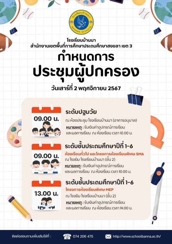 กำหนดการประชุมผู้ปกครอง ประจำภาคเรียนที่ 2 ปีการศึกษา 2567
